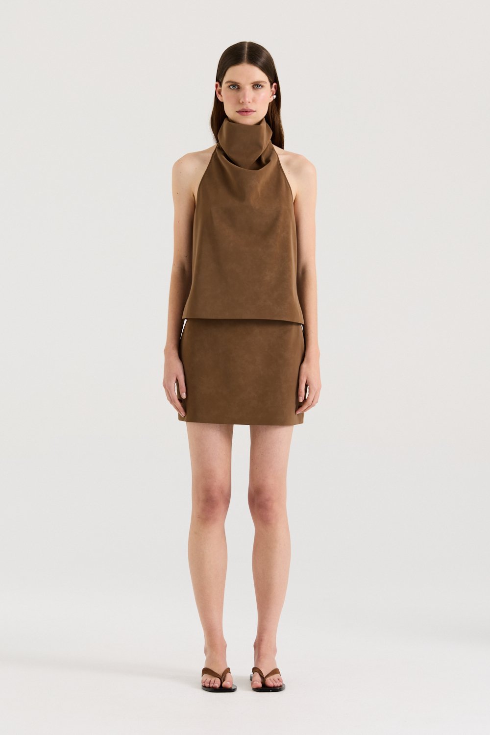 Rediscover our best-selling Brea Top in a new textured fabrication - An elegant statement with a contemporary edge. Designed with a high cowl neckline and a striking open low back, the Brea Top is perfect for effortless evening dressing.