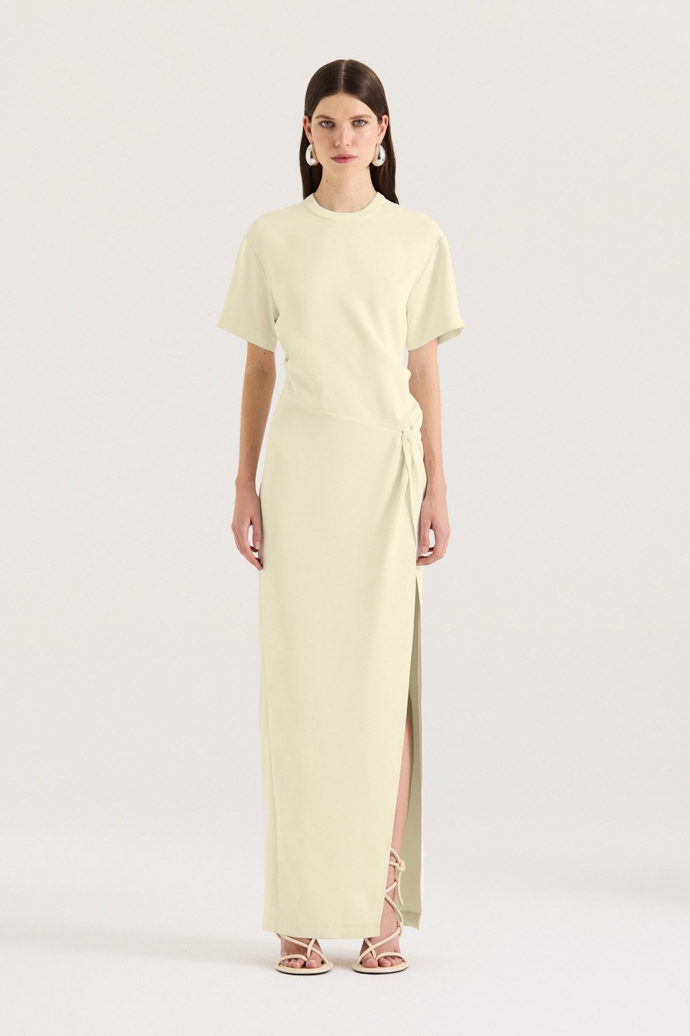 We re-introduce the Avila Dress - Crafted in a seasonal Butter hue, this relaxed yet statuesque silhouette features intricate knot detailing. Complete your look with a heel or sandal this season.