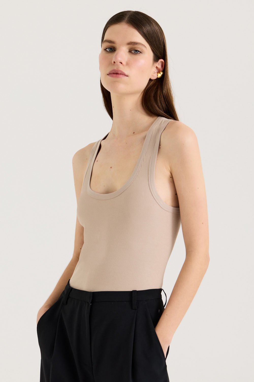 Rediscover our best-selling Orla Tank in a new Light Taupe hue - The ultimate minimal basic, crafted from a super soft stretch luxe rib fabrication. Designed to stay timeless in your wardrobe, Orla is featured in three minimalistic hues, and will effortlessly pair back with your existing wardrobe pieces.