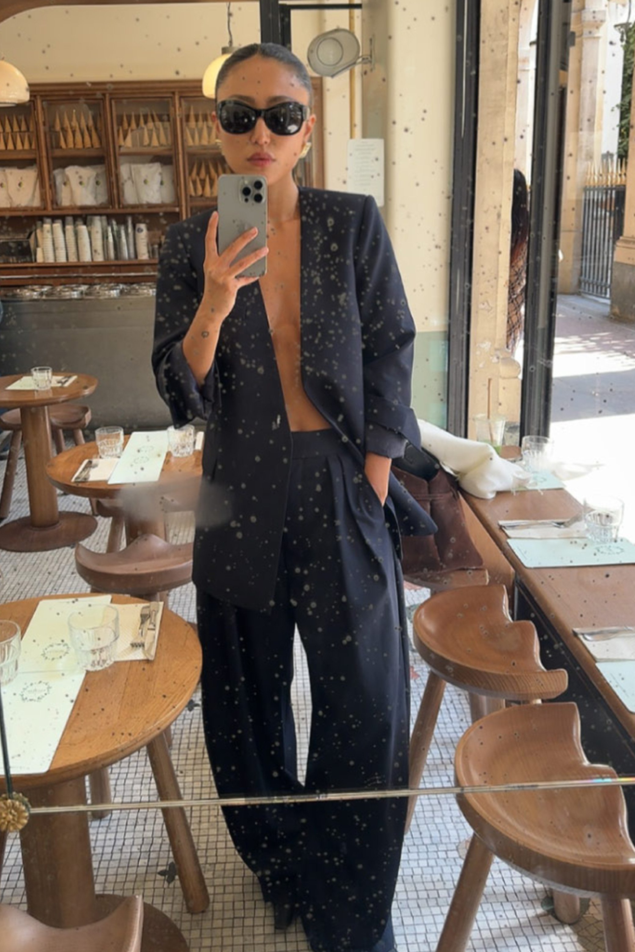 Alice at the Palais Royale wearing the Sharli Blazer and Sharli Pant.